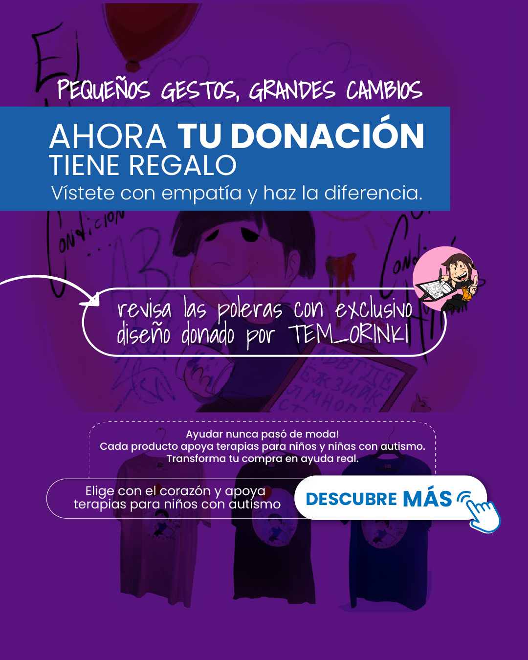 Tu mundo es mi mundo, es una fundación que nació en marzo del año 2018, después del diagnóstico de Matías, nieto de la fundadora. Como él vive en Francia y buscando de alguna forma saber y aprender sobre la condición de autismo y poder apoyar a su hija, Nace la fundación.
